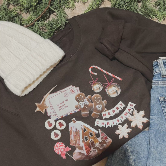 Peppermint espresso martinis, ginger bread houses, and holiday music in the background, the perfect night with your besties in your new holiday scrapbook sweatshirt: Cookies for Santa!